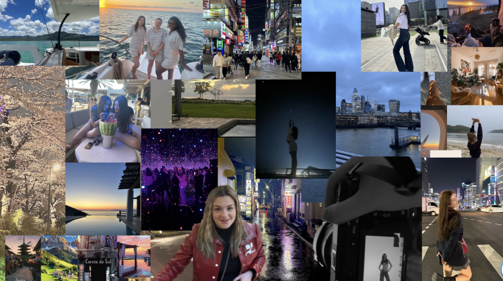 When it came to choosing the pictures for my mood board, I made sure to include a variety of shots that I had taken on my many trips. The unique cultures and stunning scenery of the nations I’ve visited over the past few months—South Korea, Japan, Spain, Greece, France, and Mauritius—are beautifully captured in these photos. During my visit to Japan, I arrived amidst the enchanting cherry blossom season. The photographs showcase Japan’s traditional Sakura flowers, symbolizing the delicate balance between life and death, beauty and violence, given their vibrant colors and brief lifespan. South Korea offered a unique nightlife experience, a departure from my usual routine. The high-energy atmosphere allowed exploration at any hour, presenting opportunities to walk, shop, dance, and savor intriguing local cuisine. The selected pictures capture the diverse landscapes, both day and night. I have a particular spot in my heart for Greece; it’s like a second home. Several images on the mood board capture the timeless charm of its sunsets, which bring back happy memories of my grandfather and my early years. A significant portion of the mood board is dedicated to Mauritius, where I experienced an unforgettable trip in December. The chosen images showcase the island’s stunning daytime views, featuring the azure sea from various locations, as well as the mesmerizing night sky illuminated by stars. These well chosen photos capture my favorite moments and the presence of loved ones, in addition to chronicling my trips. Travelling is more than simply a hobby for me—it’s a core part of who I am and a deep-seated passion.